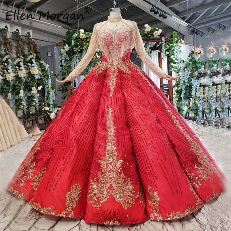 Saudi Arabia Long Sleeves Ball Gowns fringe evening gowns