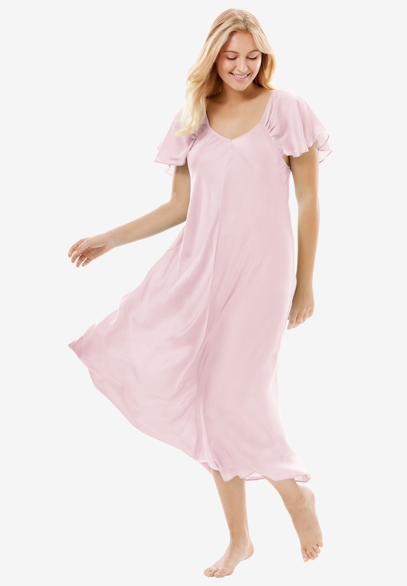 The Luxe Satin Flutter-Sleeve Long woman within long nightgowns