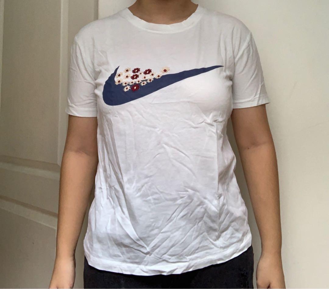 white nike with flowers tee, Women's white nike with flowers