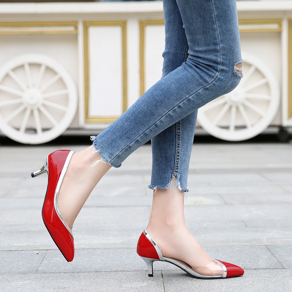 Sexy Pointed Toe Pu Women's Pump Metal mid heel dress shoes