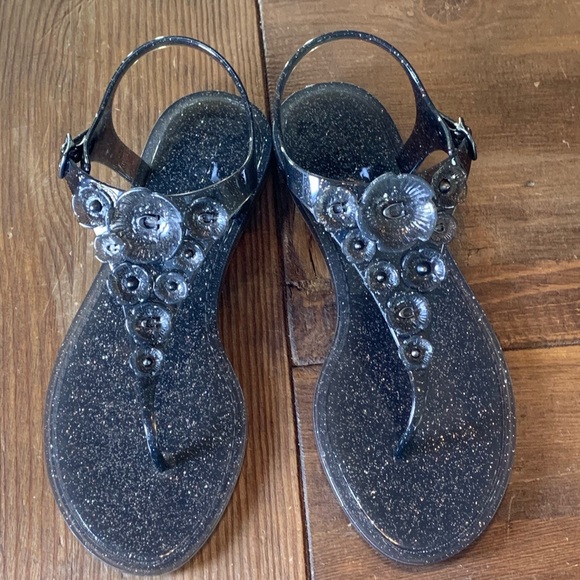 Coach Tea Rose Black Jelly Sandals coach tea rose jelly sandals