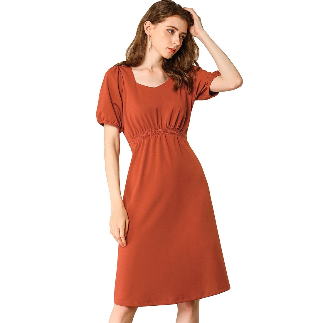 Shop Allegra K Women's Sweetheart Neck burnt orange casual dress