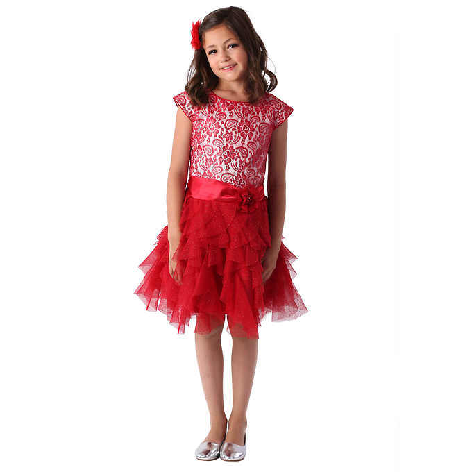 Jona Michelle Girls' Holiday Dress, Red girls red holiday dress