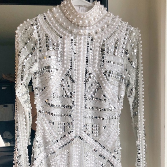 Pearl Embellished Mini Dress - Silver asos edition embellished dress