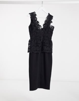 Bardot lace peplum midi dress in black black peplum midi dress