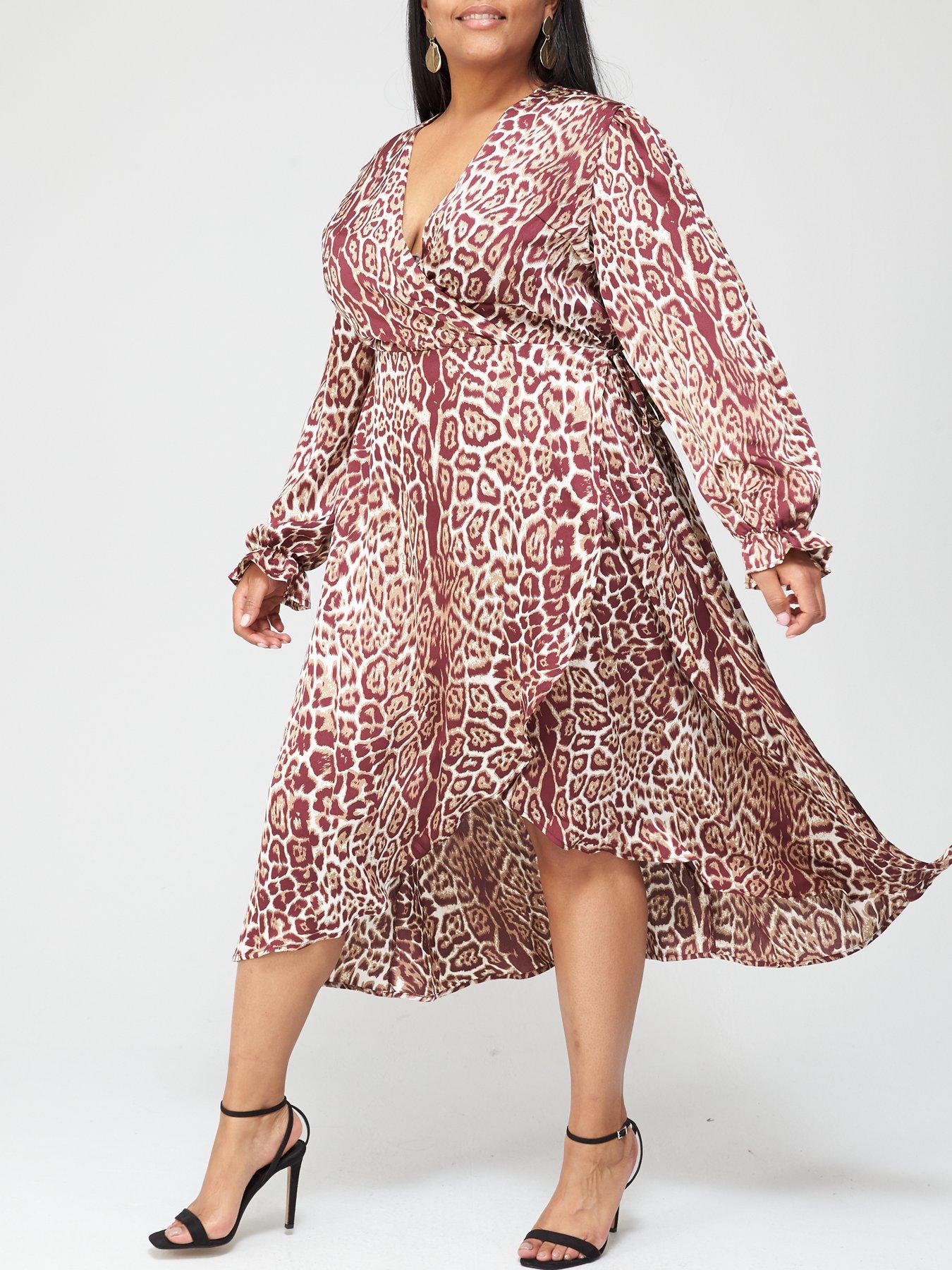 AX Paris Plus animal print satin wrap ax paris curve wrap dress