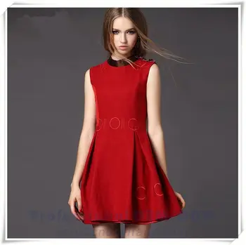hat, red dress, skater dress, dress