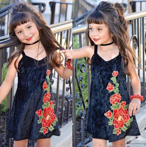 2020 Summer Kids Girls Black Velvet girls black sundress