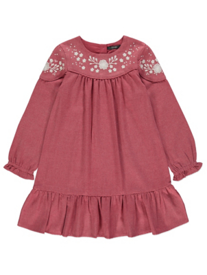 Pink Floral Embroidered Smock Dress asda flower girl dresses