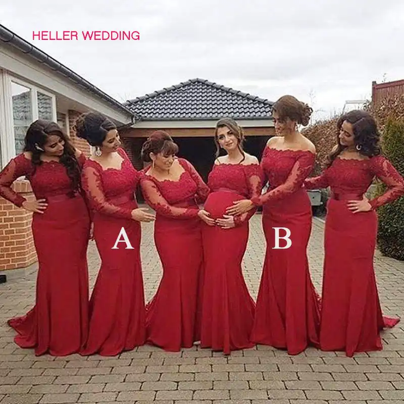 red bridesmaid dresses long