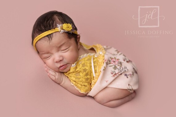 lace romper photo prop yellow floral yellow newborn outfit