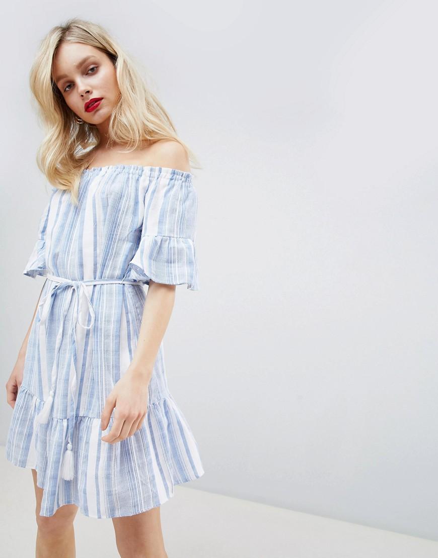 New Look Stripe Bardot Sundress - Blue bardot sundress