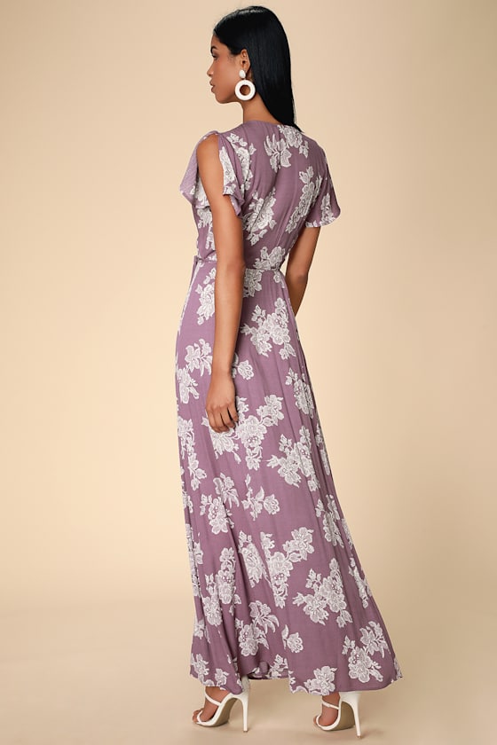 Dusty Lavender Floral Print Dress lulus heart of marigold