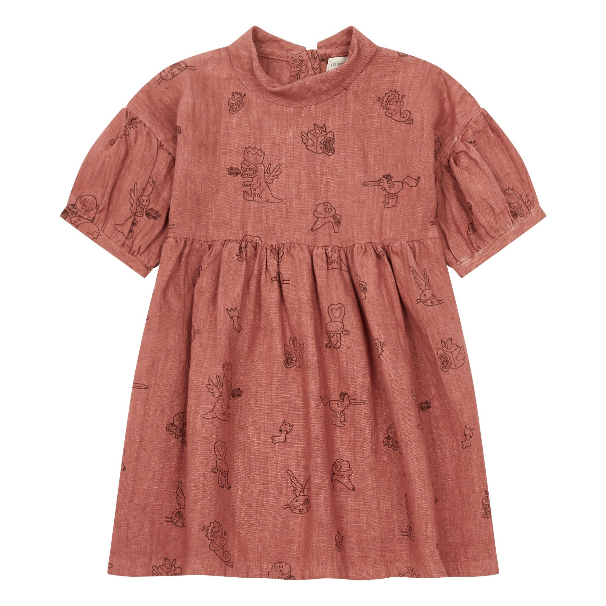Print Dress Brick red Yellowpelota brick red dress