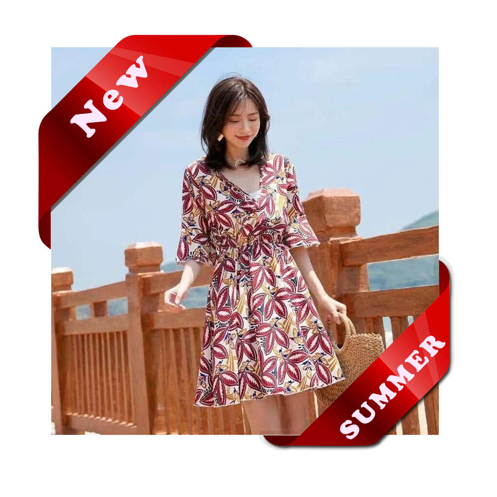 V-Neck Floral Design Mini Dress lazada summer outfit