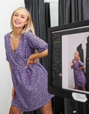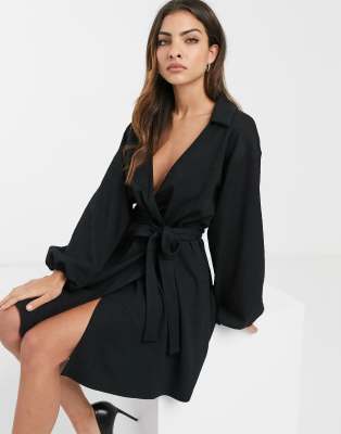 ASOS DESIGN wrap front textured mini asos white wrap textured smock dress