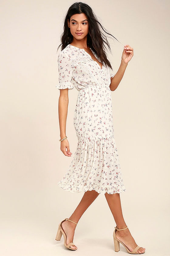 cream floral midi dress