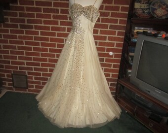 1950 Green Sequin Vintage Ball Gown vintage ball gowns 1950