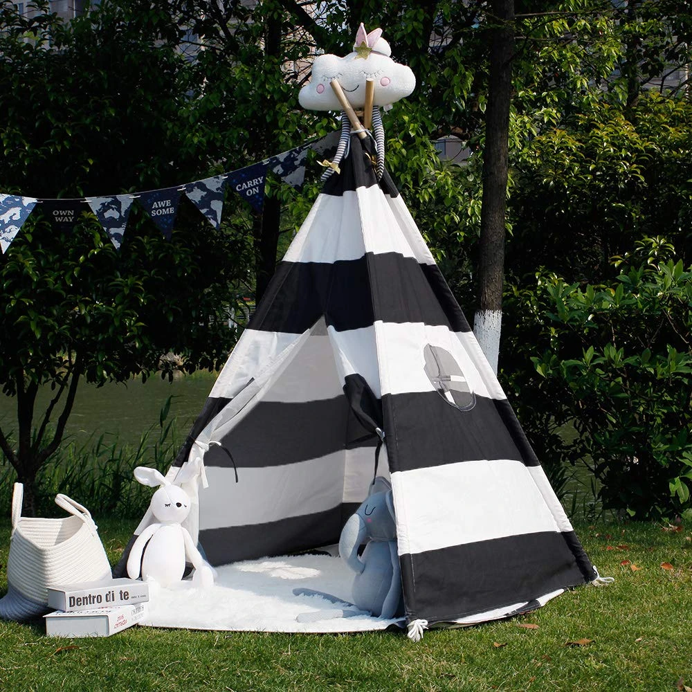 Black Striped Canvas Kids Play Indian striped teepee tent