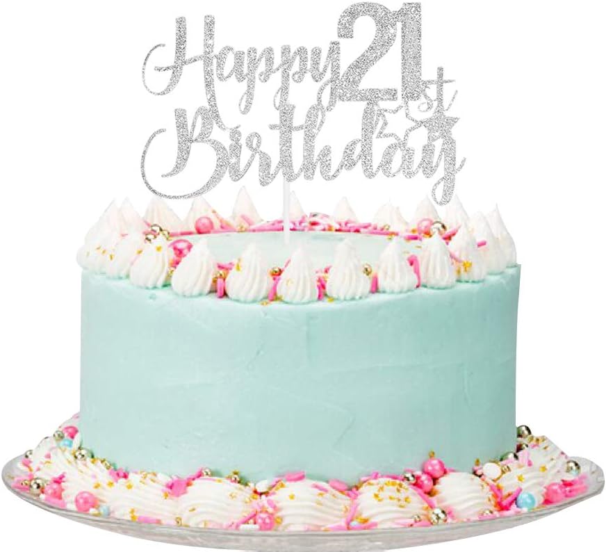Silver Glitter Happy 21st Birthday Cake 21st birthday girl cake
