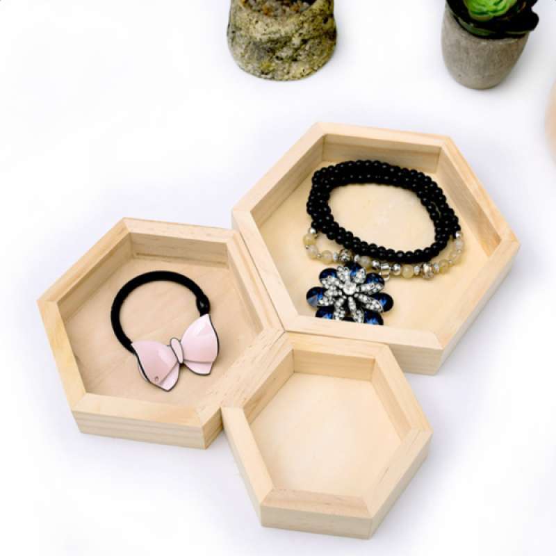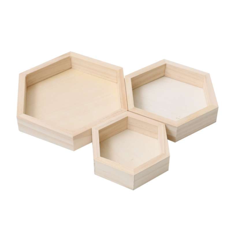 Jual 3pcs Unpainted Hexagonal Wooden kids jewelry storage