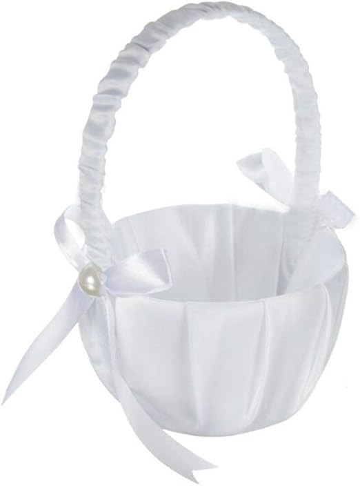 Romantic White Satin Beaded Wedding diy satin flower girl basket