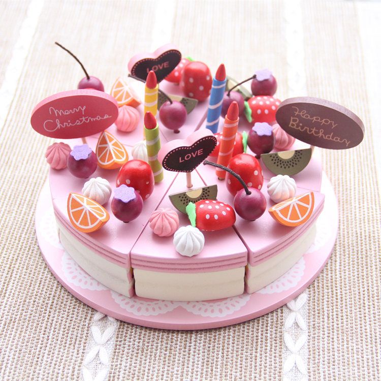 wooden play birthday cake
