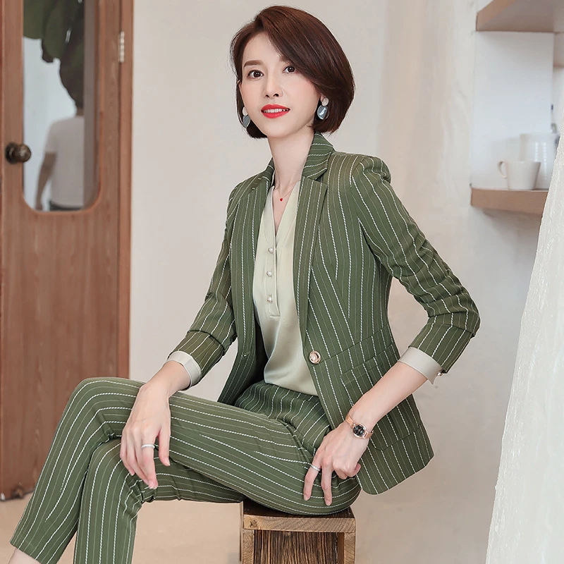 Green Striped Formal woman suits pink and green ladies suits