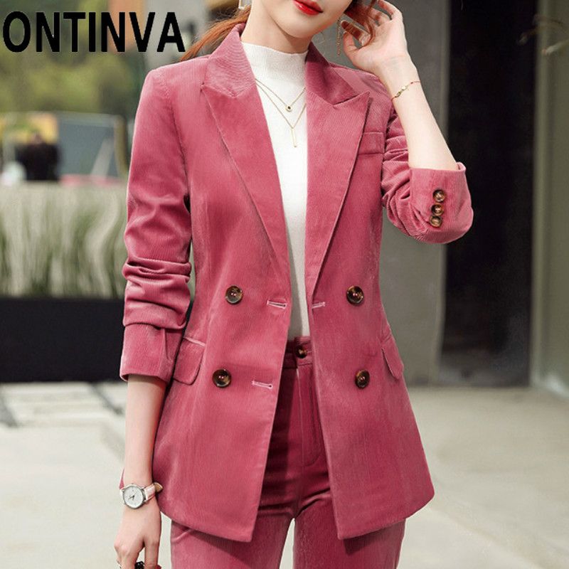 2020 Lady Black Pink Green Corduroy pink and green ladies suits