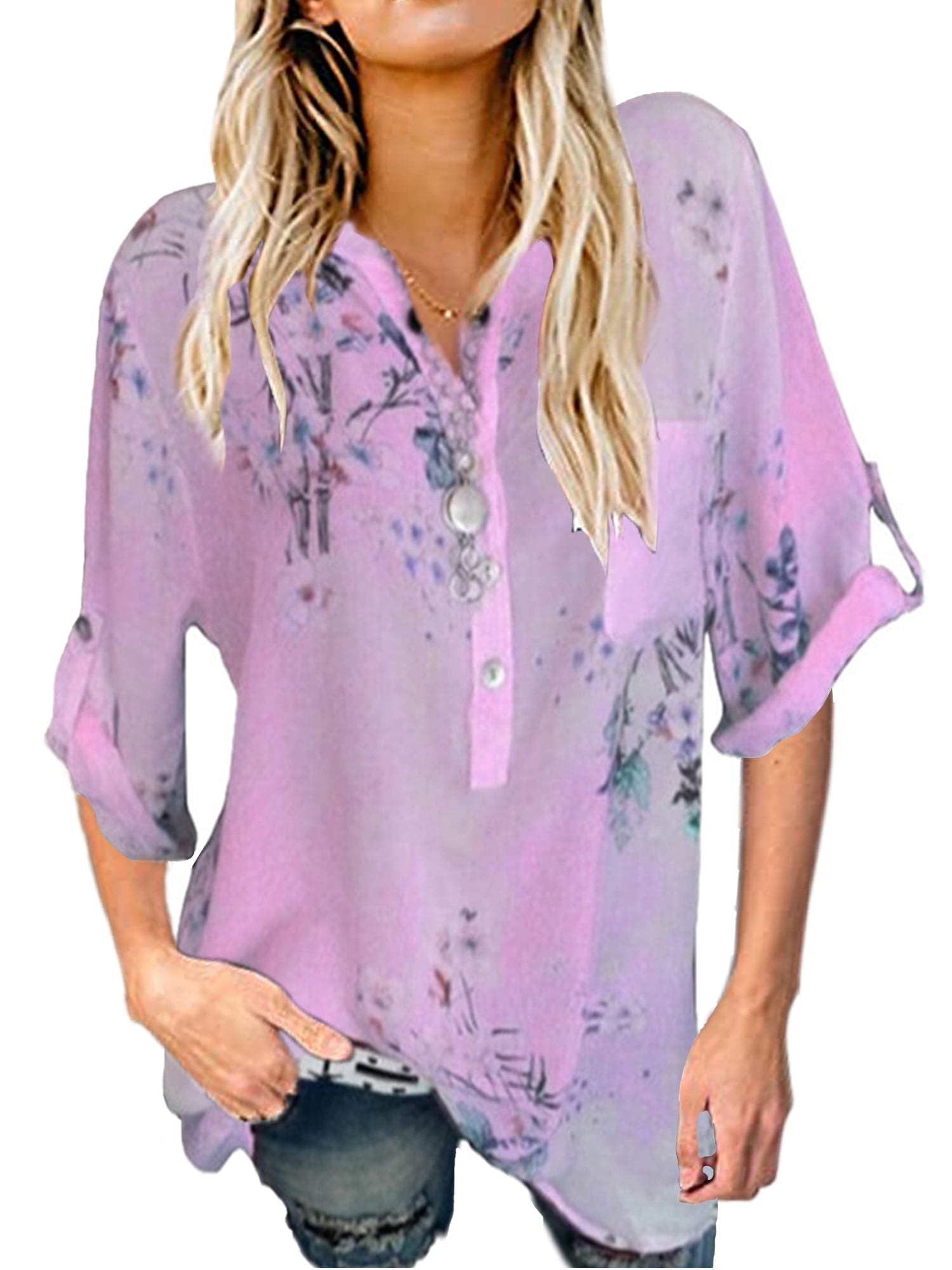 Sleeve Blouse V Neck Casual Tunics Tops womens smock tops with pockets