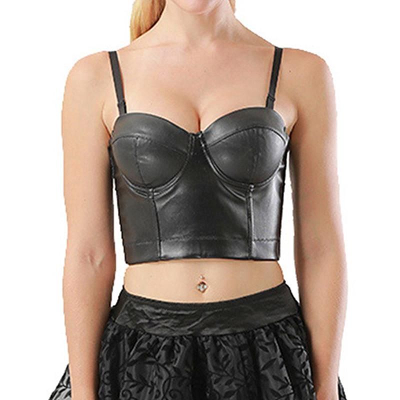 Faux Leather Bra Bustier Crop Top