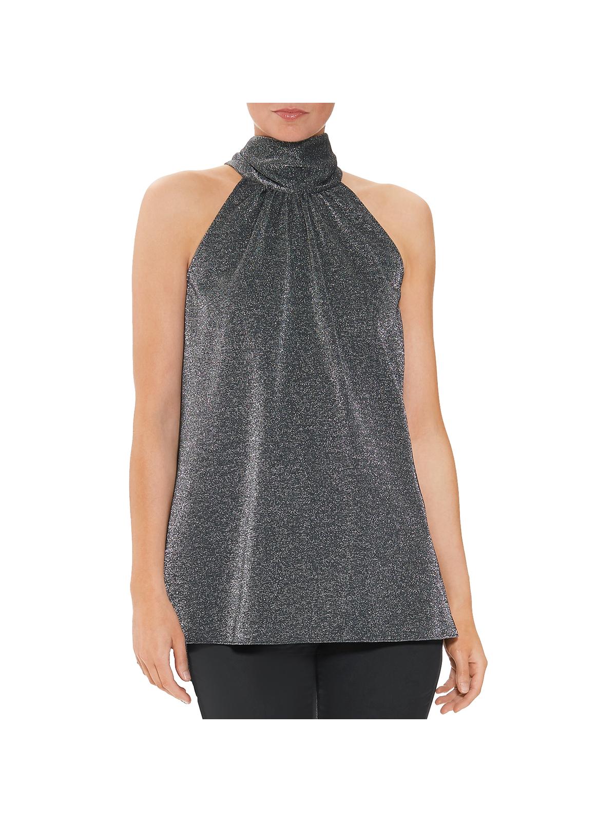 Halston - Halston Womens Metallic Mock metallic mock neck top