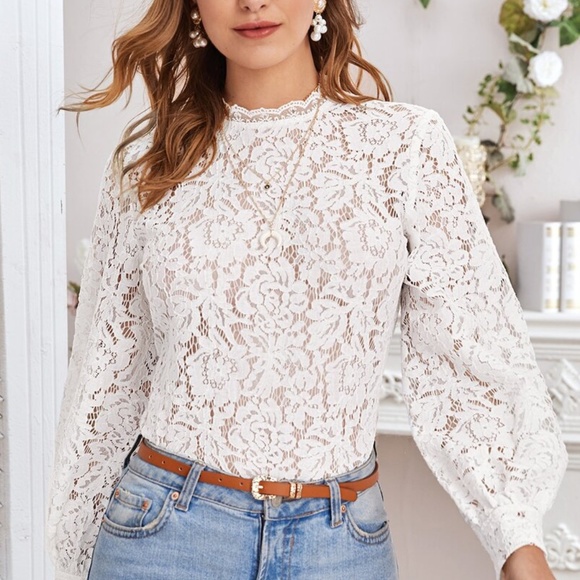 Tops | Balloon Long Sleeve Sheer White sheer white top long sleeve